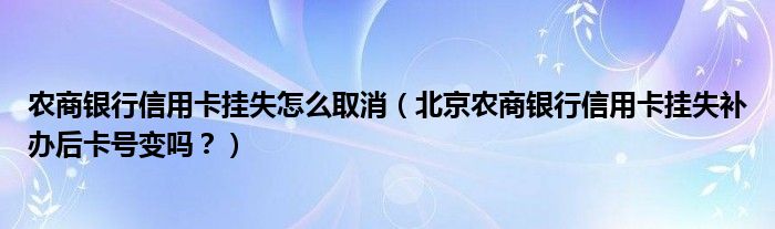 导读 大家好,小元来为大家解答问题。农商银行信用卡挂失怎么取消,北京农商银行信用卡挂失补办后卡号变吗?这个很多人还不知道,现在让我们一起