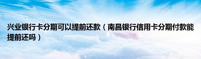 导读 大家好,小元来为大家解答问题。兴业银行卡分期可以提前还款,南昌银行信用卡分期付款能提前还吗这个很多人还不知道,现在让我们一起来了解