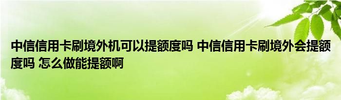 大家好,小元来为大家解答问题。中信信用卡刷境外机可以提额度吗,中信信用卡刷境外会提额度吗,怎么做能提额啊这个很多人还不知道,现在让我们一起来了解下吧!