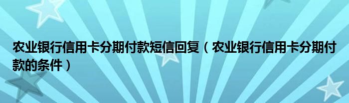 导读 大家好,小元来为大家解答问题。农业银行信用卡分期付款短信回复,农业银行信用卡分期付款的条件这个很多人还不知道,现在让我们一起来了解