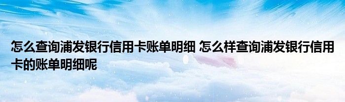 导读 大家好,小元来为大家解答问题。怎么查询浦发银行信用卡账单明细,怎么样查询浦发银行信用卡的账单明细呢这个很多人还不知道,现在让我们一