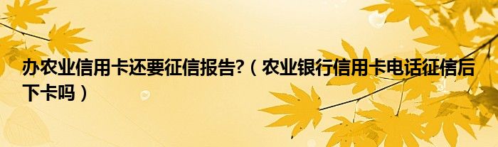 导读 大家好,小元来为大家解答问题。办农业信用卡还要征信报告?,农业银行信用卡电话征信后下卡吗这个很多人还不知道,现在让我们一起来了解下吧