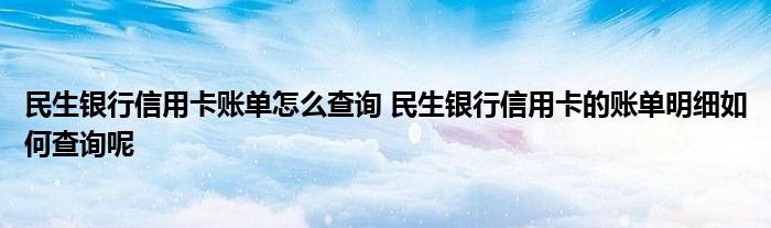 5、 三。网银查询这是一种方便快捷的查询民生银行信用卡账单的方式。持卡人可通过民生银行网站输入身份证号码和信用卡的查询密码,登录民生银行信用卡网上银行,查询账单及交易明细、金额、还款信息。