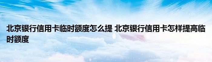 导读 大家好,小元来为大家解答问题。北京银行信用卡临时额度怎么提,北京银行信用卡怎样提高临时额度这个很多人还不知道,现在让我们一起来了解