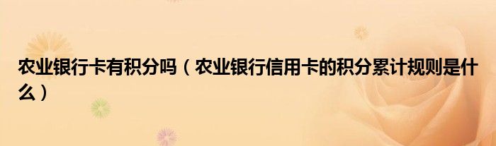 导读 大家好,小元来为大家解答问题。农业银行卡有积分吗,农业银行信用卡的积分累计规则是什么这个很多人还不知道,现在让我们一起来了解下吧!