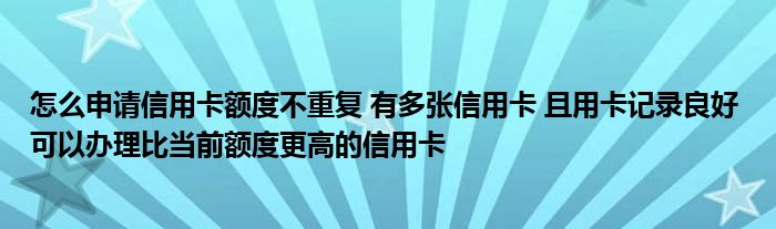 大家好,小元来为大家解答问题。怎么申请信用卡额度不重复,有多张信用卡,且用卡记录良好,可以办理比当前额度更高的信用卡这个很多人还不知道,现在让我们一起来了解下吧!