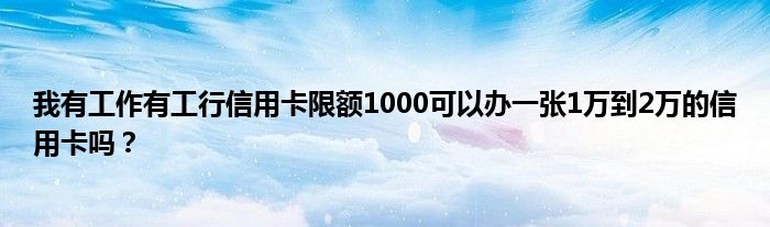 大家好,小元来为大家解答问题。我有工作有工行信用卡限额1000可以办一张1万到2万的信用卡吗?这个很多人还不知道,现在让我们一起来了解下吧!