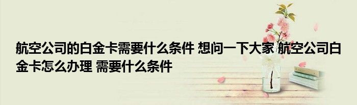 大家好,小元来为大家解答问题。航空公司的白金卡需要什么条件,想问一下大家,航空公司白金卡怎么办理,需要什么条件这个很多人还不知道,现在让我们一起来了解下吧!