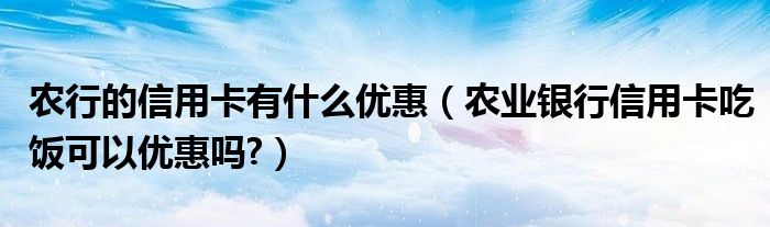 导读 大家好,小元来为大家解答问题。农行的信用卡有什么优惠,农业银行信用卡吃饭可以优惠吗?这个很多人还不知道,现在让我们一起来了解下吧!首