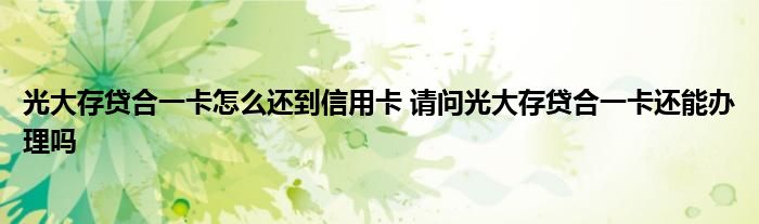 导读 大家好,小元来为大家解答问题。光大存贷合一卡怎么还到信用卡,请问光大存贷合一卡还能办理吗这个很多人还不知道,现在让我们一起来了解下