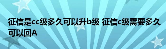 导读 大家好,小元来为大家解答问题。征信是cc级多久可以升b级,征信c级需要多久可以回A这个很多人还不知道,现在让我们一起来了解下吧!