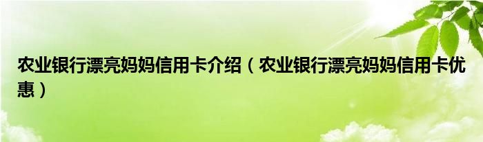 大家好,小元来为大家解答问题。农业银行漂亮妈妈信用卡介绍,农业银行漂亮妈妈信用卡优惠这个很多人还不知道,现在让我们一起来了解下吧!