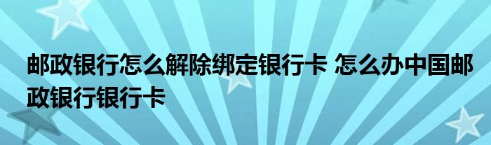 导读 大家好,小元来为大家解答问题。邮政银行怎么解除绑定银行卡,怎么办中国邮政银行银行卡这个很多人还不知道,现在让我们一起来了解下吧!