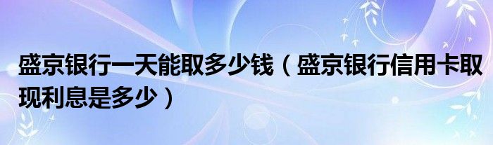导读 大家好,小元来为大家解答问题。盛京银行一天能取多少钱,盛京银行信用卡取现利息是多少这个很多人还不知道,现在让我们一起来了解下吧!边