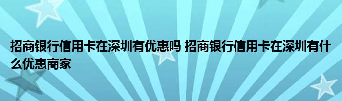 大家好,小元来为大家解答问题。招商银行信用卡在深圳有优惠吗,招商银行信用卡在深圳有什么优惠商家这个很多人还不知道,现在让我们一起来了解下吧!