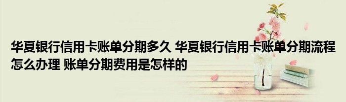 导读 大家好,小元来为大家解答问题。华夏银行信用卡账单分期多久,华夏银行信用卡账单分期流程怎么办理,账单分期费用是怎样的这个很多人还不知