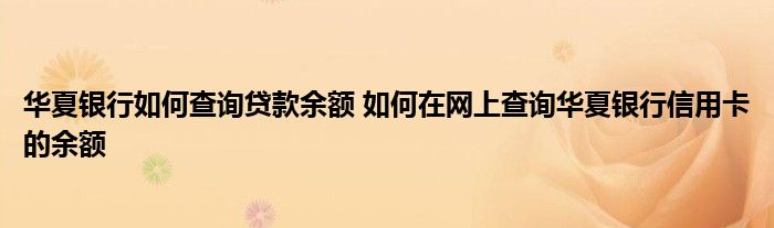 大家好,小元来为大家解答问题。华夏银行如何查询贷款余额,如何在网上查询华夏银行信用卡的余额这个很多人还不知道,现在让我们一起来了解下吧!