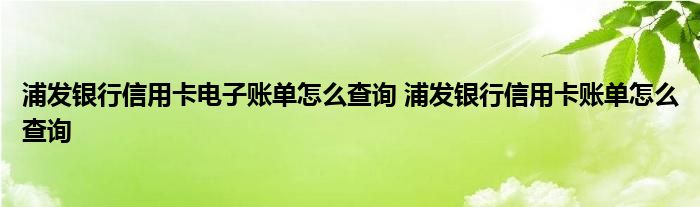 1、 浦发银行信用卡网上银行账单查询一、账单查询您可以通过银行每期发给您的对账单查询您的账单信息。二、电话查询您可以根据提示拨打24小时服务热线查询您的账单信息。三。短信查询您可以使用预留手机编辑短信“ZDCX空白卡号后四位”至95528查询您的账单信息。如果你还有其他具体问题,建议你打电话给发卡行的客服人员,希望能帮到你。