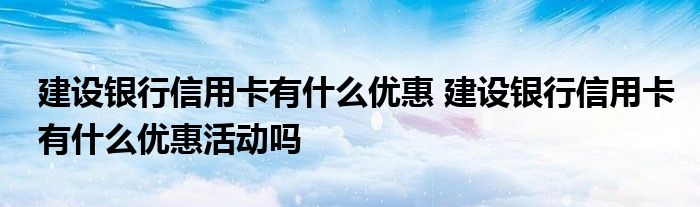 导读 大家好,小元来为大家解答问题。建设银行信用卡有什么优惠,建设银行信用卡有什么优惠活动吗这个很多人还不知道,现在让我们一起来了解下吧