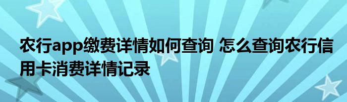 导读 大家好,小元来为大家解答问题。农行app缴费详情如何查询,怎么查询农行信用卡消费详情记录这个很多人还不知道,现在让我们一起来了解下吧!