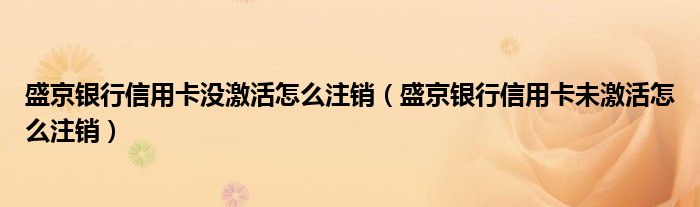 导读 大家好,小元来为大家解答问题。盛京银行信用卡没激活怎么注销,盛京银行信用卡未激活怎么注销这个很多人还不知道,现在让我们一起来了解下
