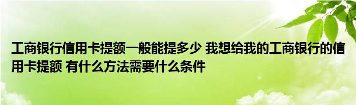 大家好,小元来为大家解答问题。工商银行信用卡提额一般能提多少,我想给我的工商银行的信用卡提额,有什么方法需要什么条件这个很多人还不知道,现在让我们一起来了解下吧!