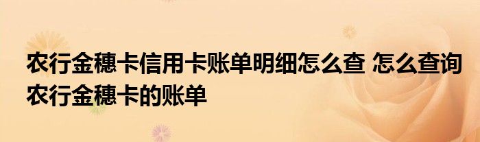 导读 大家好,小元来为大家解答问题。农行金穗卡信用卡账单明细怎么查,怎么查询农行金穗卡的账单这个很多人还不知道,现在让我们一起来了解下吧