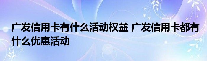 导读 大家好,小元来为大家解答问题。广发信用卡有什么活动权益,广发信用卡都有什么优惠活动这个很多人还不知道,现在让我们一起来了解下吧!