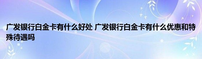 导读 大家好,小元来为大家解答问题。广发银行白金卡有什么好处,广发银行白金卡有什么优惠和特殊待遇吗这个很多人还不知道,现在让我们一起来了