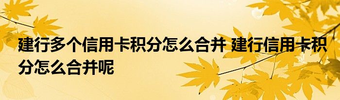 导读 大家好,小元来为大家解答问题。建行多个信用卡积分怎么合并,建行信用卡积分怎么合并呢这个很多人还不知道,现在让我们一起来了解下吧!