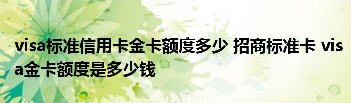 导读 大家好,小元来为大家解答问题。visa标准信用卡金卡额度多少,招商标准卡,visa金卡额度是多少钱这个很多人还不知道,现在让我们一起来了解