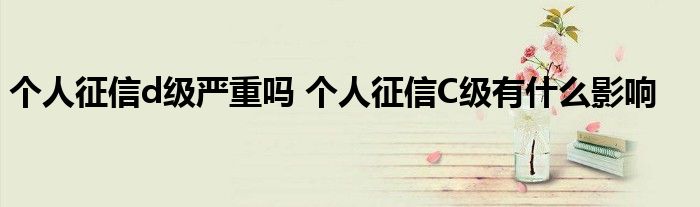 导读 大家好,小元来为大家解答问题。个人征信d级严重吗,个人征信C级有什么影响这个很多人还不知道,现在让我们一起来了解下吧!