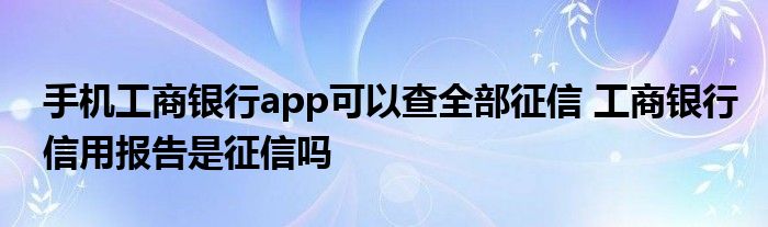 导读 大家好,小元来为大家解答问题。手机工商银行app可以查全部征信,工商银行信用报告是征信吗这个很多人还不知道,现在让我们一起来了解下吧!