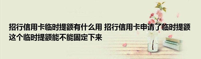 导读 大家好,小元来为大家解答问题。招行信用卡临时提额有什么用,招行信用卡申请了临时提额,这个临时提额能不能固定下来这个很多人还不知道,