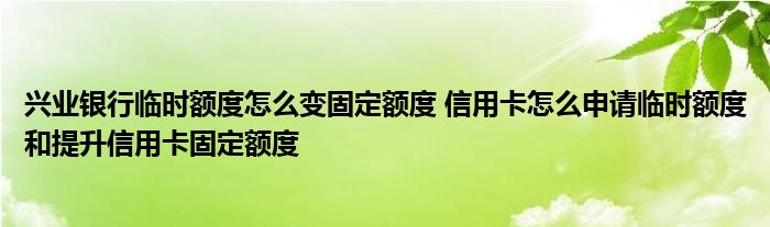 大家好,小元来为大家解答问题。兴业银行临时额度怎么变固定额度,信用卡怎么申请临时额度和提升信用卡固定额度这个很多人还不知道,现在让我们一起来了解下吧!