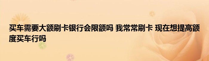 大家好,小元来为大家解答问题。买车需要大额刷卡银行会限额吗,我常常刷卡,现在想提高额度买车行吗这个很多人还不知道,现在让我们一起来了解下吧!