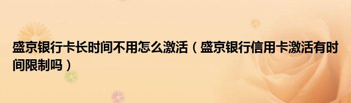 导读 大家好,小元来为大家解答问题。盛京银行卡长时间不用怎么激活,盛京银行信用卡激活有时间限制吗这个很多人还不知道,现在让我们一起来了解