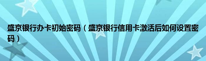 导读 大家好,小元来为大家解答问题。盛京银行办卡初始密码,盛京银行信用卡激活后如何设置密码这个很多人还不知道,现在让我们一起来了解下吧!