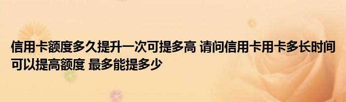 导读 大家好,小元来为大家解答问题。信用卡额度多久提升一次可提多高,请问信用卡用卡多长时间可以提高额度,最多能提多少这个很多人还不知道,