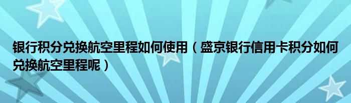 导读 大家好,小元来为大家解答问题。银行积分兑换航空里程如何使用,盛京银行信用卡积分如何兑换航空里程呢这个很多人还不知道,现在让我们一起