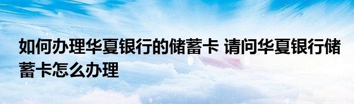 导读 大家好,小元来为大家解答问题。如何办理华夏银行的储蓄卡,请问华夏银行储蓄卡怎么办理这个很多人还不知道,现在让我们一起来了解下吧!