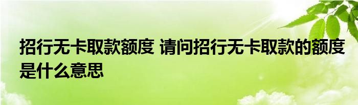 大家好,小元来为大家解答问题。招行无卡取款额度,请问招行无卡取款的额度是什么意思这个很多人还不知道,现在让我们一起来了解下吧!
