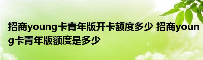 导读 大家好,小元来为大家解答问题。招商young卡青年版开卡额度多少,招商young卡青年版额度是多少这个很多人还不知道,现在让我们一起来了解下