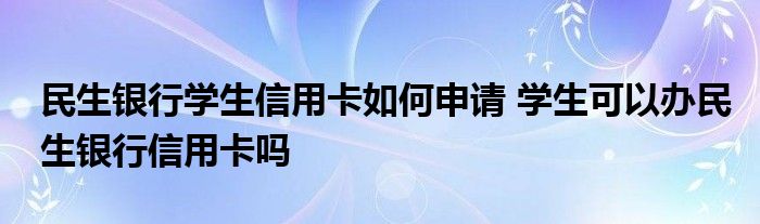 导读 大家好,小元来为大家解答问题。民生银行学生信用卡如何申请,学生可以办民生银行信用卡吗这个很多人还不知道,现在让我们一起来了解下吧!