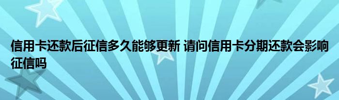 导读 大家好,小元来为大家解答问题。信用卡还款后征信多久能够更新,请问信用卡分期还款会影响征信吗这个很多人还不知道,现在让我们一起来了解
