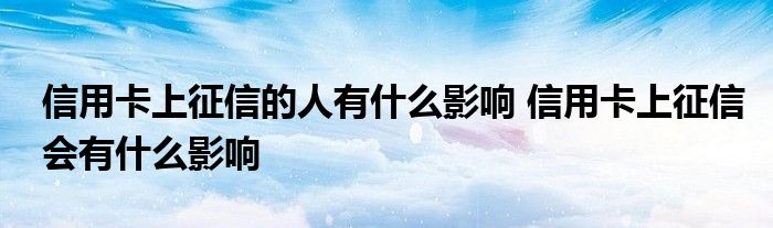 导读 大家好,小元来为大家解答问题。信用卡上征信的人有什么影响,信用卡上征信会有什么影响这个很多人还不知道,现在让我们一起来了解下吧!