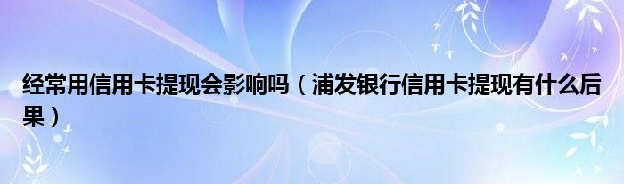 导读 大家好,小元来为大家解答问题。经常用信用卡提现会影响吗,浦发银行信用卡提现有什么后果这个很多人还不知道,现在让我们一起来了解下吧!
