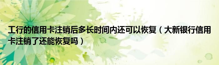 导读 大家好,小元来为大家解答问题。工行的信用卡注销后多长时间内还可以恢复,大新银行信用卡注销了还能恢复吗这个很多人还不知道,现在让我们