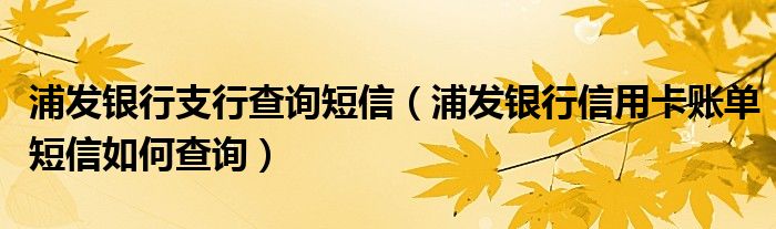 导读 大家好,小元来为大家解答问题。浦发银行支行查询短信,浦发银行信用卡账单短信如何查询这个很多人还不知道,现在让我们一起来了解下吧!首