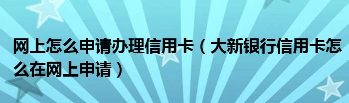 导读 大家好,小元来为大家解答问题。网上怎么申请办理信用卡,大新银行信用卡怎么在网上申请这个很多人还不知道,现在让我们一起来了解下吧!